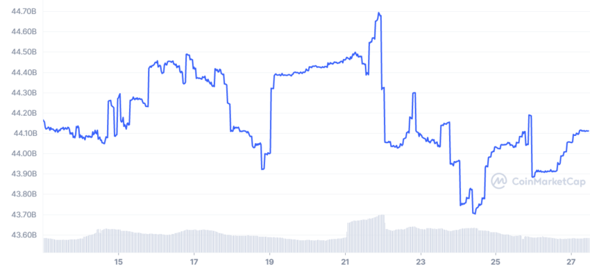 Bất chấp nhiều stablecoin bị sụt giảm nguồn cung, một số stablecoin như Pax Dollar và USDC đã chứng kiến nguồn cung stablecoin tăng lên trong bối cảnh hỗn loạn này. Trong 2 tuần qua, USDC đã chứng kiến nguồn cung tăng lên tới 44.70 tỷ USD. Mặc dù, tài sản này đã giảm xuống còn 43.70 tỷ USD vào ngày 24/11, nhưng nó đã tăng lên 44.30 tỷ USD vào thời điểm BeInCrypto viết bài.