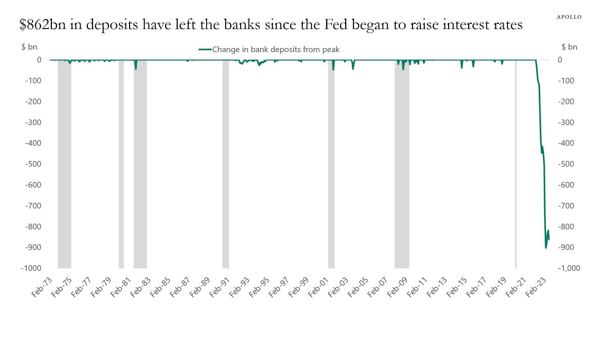 Lợi suất trái phiếu 10 năm của Hoa Kỳ đã tăng đến 4.29%, và đã thoát ra khỏi xu hướng giảm của 40 năm qua. Các ngân hàng đã chậm hơn trong việc cạnh trạnh lợi suất với quỹ thị trường tiền tệ.