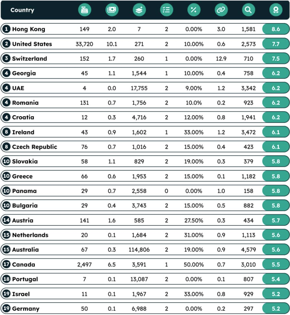 Ngoài ra, Hồng Kông cũng là nơi không thuế đối với nhà đầu tư hoặc doanh nghiệp tiền điện tử. Trong bảng xếp hạng các quốc gia quan tâm đến tiền điện tử, Hồng Kông xếp thứ 8 với 1,581 lượt tìm kiếm “tiền điện tử”. Do đó, Hồng Kông có nhiều thuận lợi trở thành thiên đường blockchain tiếp nối Singapore.