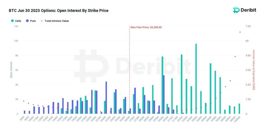 Ngoài ra, điểm max pain là 26,500 USD. Điểm max pain là mức giá có nhiều hợp đồng mở nhất. Đó cũng là mức giá mà tại đó các khoản lỗ nhiều nhất sẽ được thực hiện khi hết hạn hợp đồng.