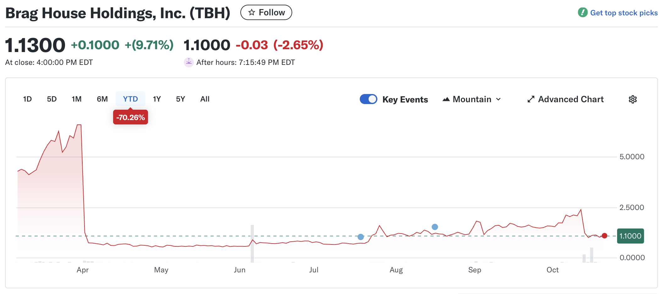 Thỏa thuận của House of Doge phù hợp với kế hoạch công khai thông qua sáp nhập ngược với Brag House Holdings (TBH). TBH cũng bắt đầu giao dịch vào tháng 03 với giá khoảng 4.30 USD mỗi cổ phiếu nhưng đã giảm xuống còn 1.13 USD, giảm gần 74%. Điều này phản ánh sự biến động rộng hơn trong số các công ty tài sản kỹ thuật số vốn hóa nhỏ.