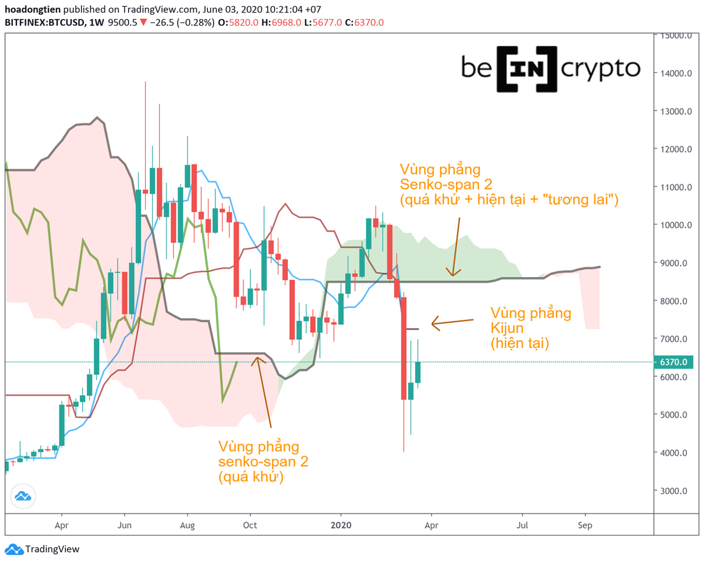 Trong hệ thống gồm 5 đường của Ichimoku, bạn sẽ thường xuyên thấy sự xuất hiện của những vùng giá phẳng tại các đường Tenkan, Kijun, Senko span 2.