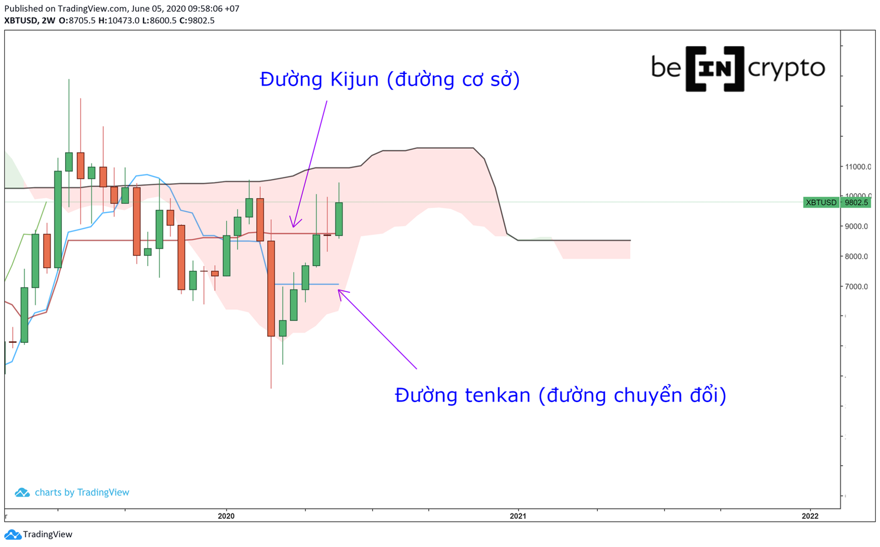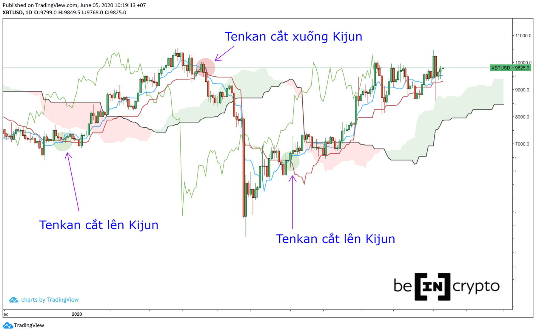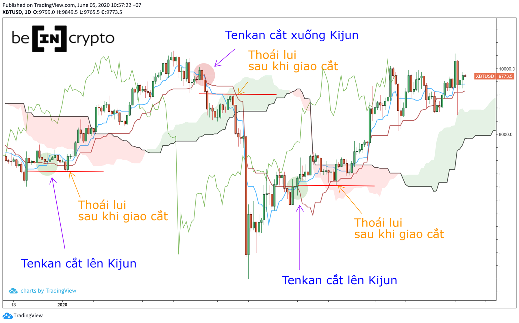 - Tenkan cắt lên Kijun đánh dấu một sự chuyển biến tăng giá tạm thời của thị trường.