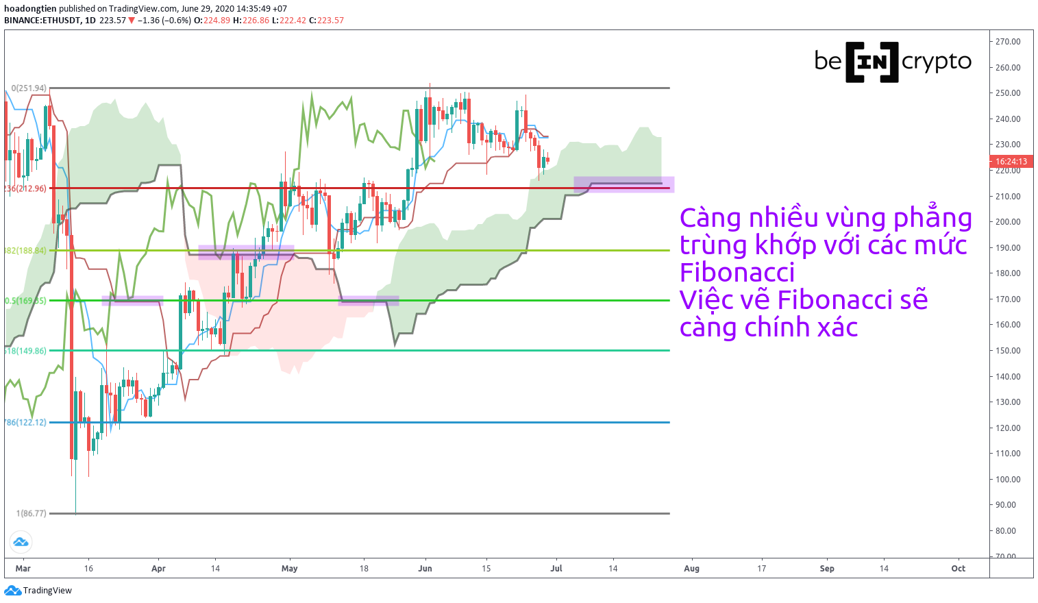- Fibonacci trở nên chính xác hơn nhờ có sự hỗ trợ của các vùng phẳng của Ichimoku.