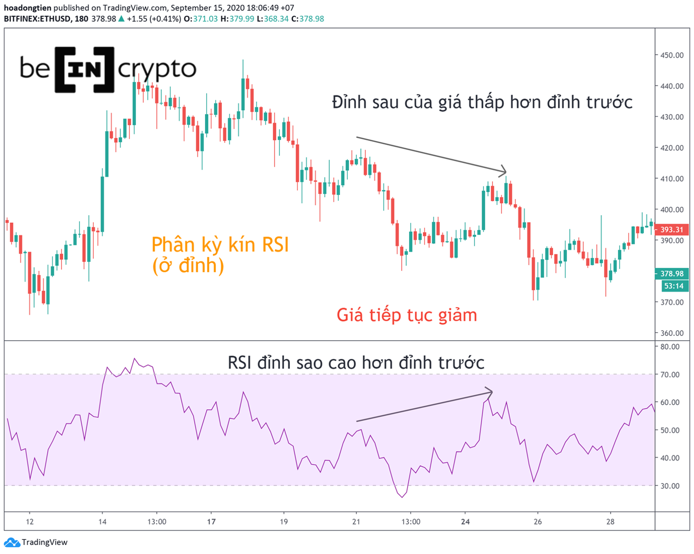 - Đỉnh sau của RSI cao hơn đỉnh trước