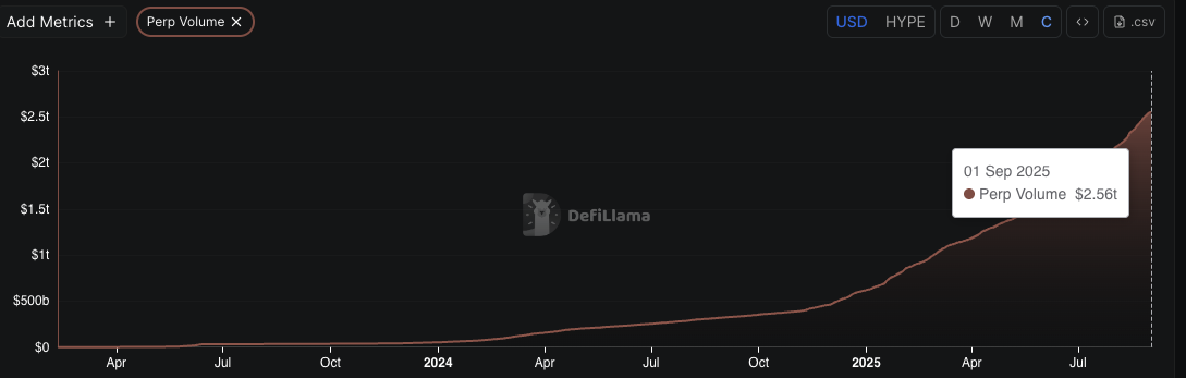 Hyperliquid (HYPE) đang gây bão trên thị trường khi doanh thu hàng tháng vượt qua 110 triệu USD, với khối lượng giao dịch vĩnh viễn đạt 2.5 nghìn tỷ USD.