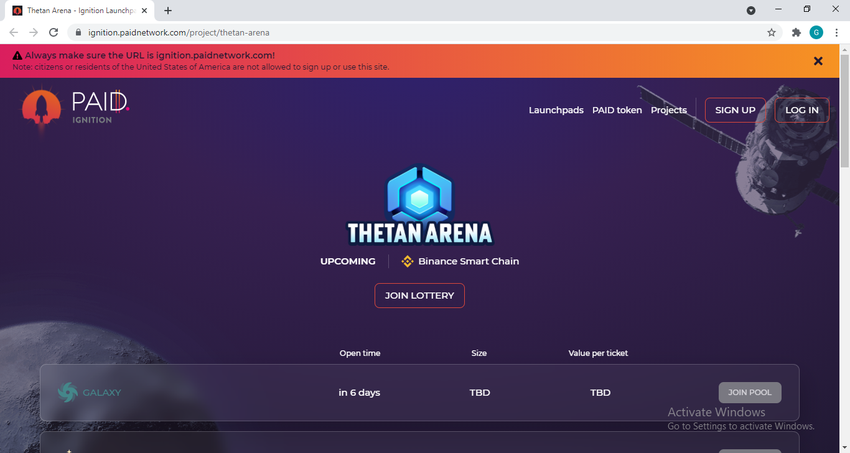 - Truy cập vào địa chỉ https://ignition.paidnetwork.com/project/thetan-arena