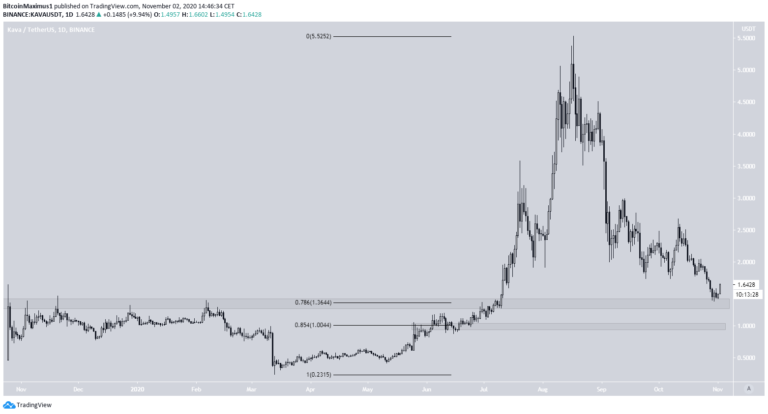 Khu vực 1,36 USD là ngưỡng sụt giảm hoàn toàn của Fib 0,786, và một sụt giảm xuống thấp hơn có thể đưa giá KAVA tới khu vực hỗ trợ tiếp theo tại 1 USD.