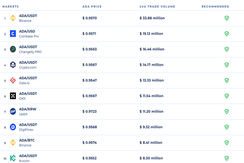 Theo đó, cặp giao dịch phổ biến nhất với Cardano hiện tại là ADA/USDT.