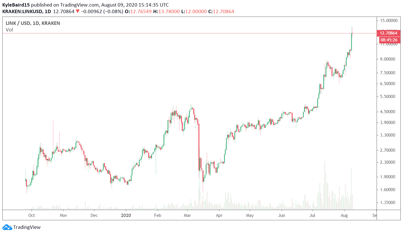 Chỉ trong 30 ngày qua, giá của LINK đã đi từ 6 USD leo lên đến 13 USD ở hiện tại.