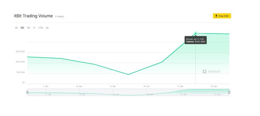 Vào ngày 05/01, khi khối lượng giao dịch đạt 129 triệu USD và đa phần là giao dịch Bitcoin. Trùng hợp thay, lúc bấy giờ, giá Bitcoin có động thái dịch chuyển tiến lên mức 40,000 USD.