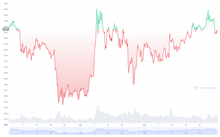 XRP đã mở cửa vào ngày 1 tháng 1 năm 2022, với giá giao dịch là 0.831 USD, đạt mức cao hàng quý là 0.911 USD và đóng cửa quý đầu tiên của năm ở mức 0.814 USD. Nhìn chung, giá đã giảm 2% trong Quý 1 năm 2022.
