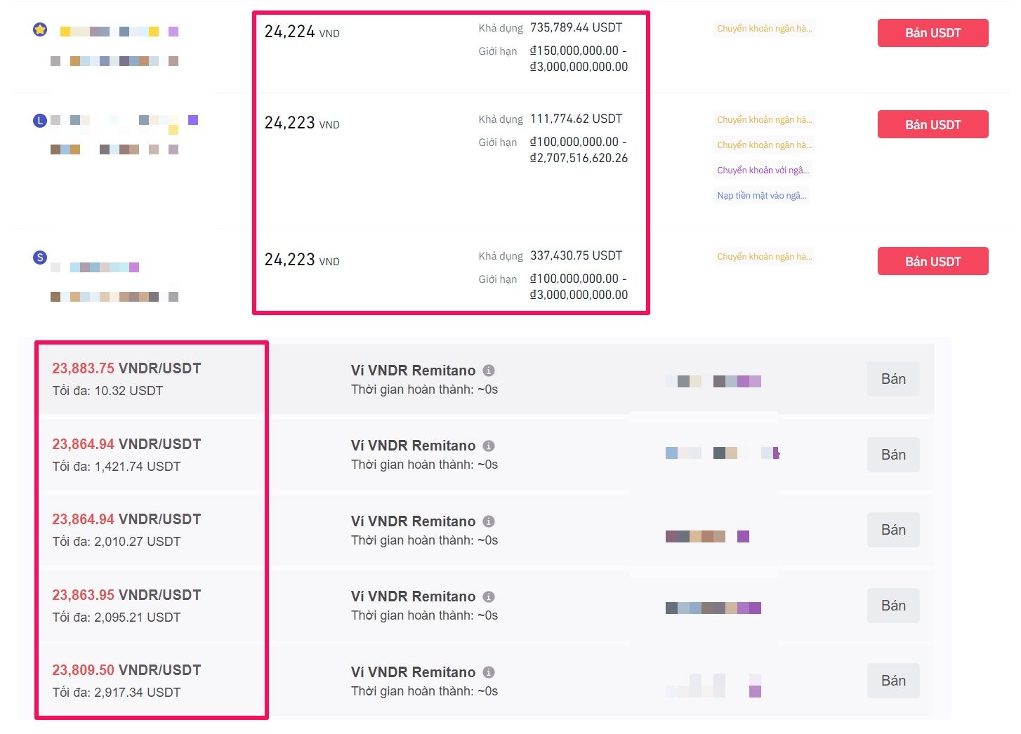 - Giá USD/VND hôm nay đã ghi nhận đà giảm mạnh khi giảm gần 1,000 VND và về dưới 24,000 VND. Cụ thể, trên sàn Binance P2P, giá bán USDT giảm về còn 24,200 VND và trên sàn Remitano giá bán USDT giảm còn 23,800 VND. Trong khi chỉ 1 tuần trước, chúng ta vẫn còn nhìn thấy mức giá trên 25,000 VND.