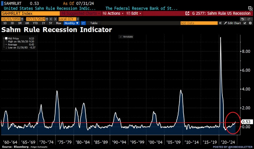 Trong các chỉ báo suy thoái kinh tế, thì quy tắc Sahm được đề xuất bởi cựu quan chức Cục Dự trữ Liên bang (Fed) Claudia Sahm là chỉ báo chưa từng sai trong 65 năm qua. Theo quy tắc này, suy thoái là khi tỷ lệ thất nghiệp tăng 0.5 điểm phần trăm so với mức thấp nhất trong 12 tháng trước đó.