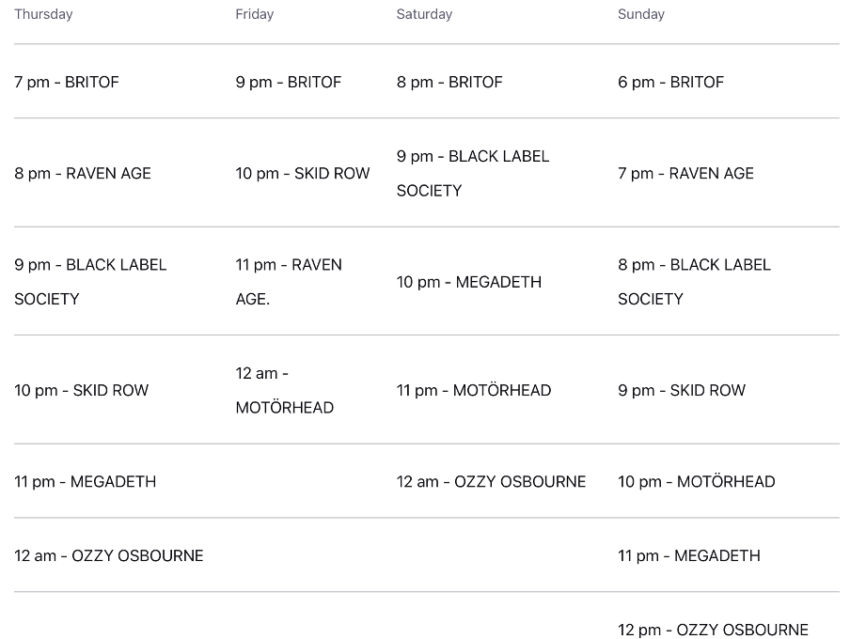 Dưới đây là sơ lược về dòng sản phẩm Ozzfest, lễ hội lưu diễn toàn cầu mang tính biểu tượng do Ozzy và Sharon Osbourne khởi xướng: