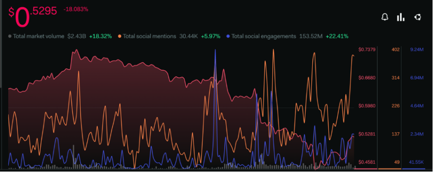 Sponsored SponsoredTuy nhiên, BeInCrypto lưu ý rằng chỉ số này đã giảm xuống mức thấp nhất là 380 vào tuần thứ hai của tháng 10. Điều này có thể khiến cho tỷ lệ người tham gia lễ hội sắp tới sẽ không cao lắm. Suy đoán này càng được khẳng định khi xem xét mức độ tương tác mạng xã hội đang giảm sút của nền tảng. Mặc dù ngày càng có nhiều lượt nhắc trên mạng xã hội trong ba ngày qua, nhưng mức độ tương tác lại có xu hướng giảm trong cùng thời điểm.