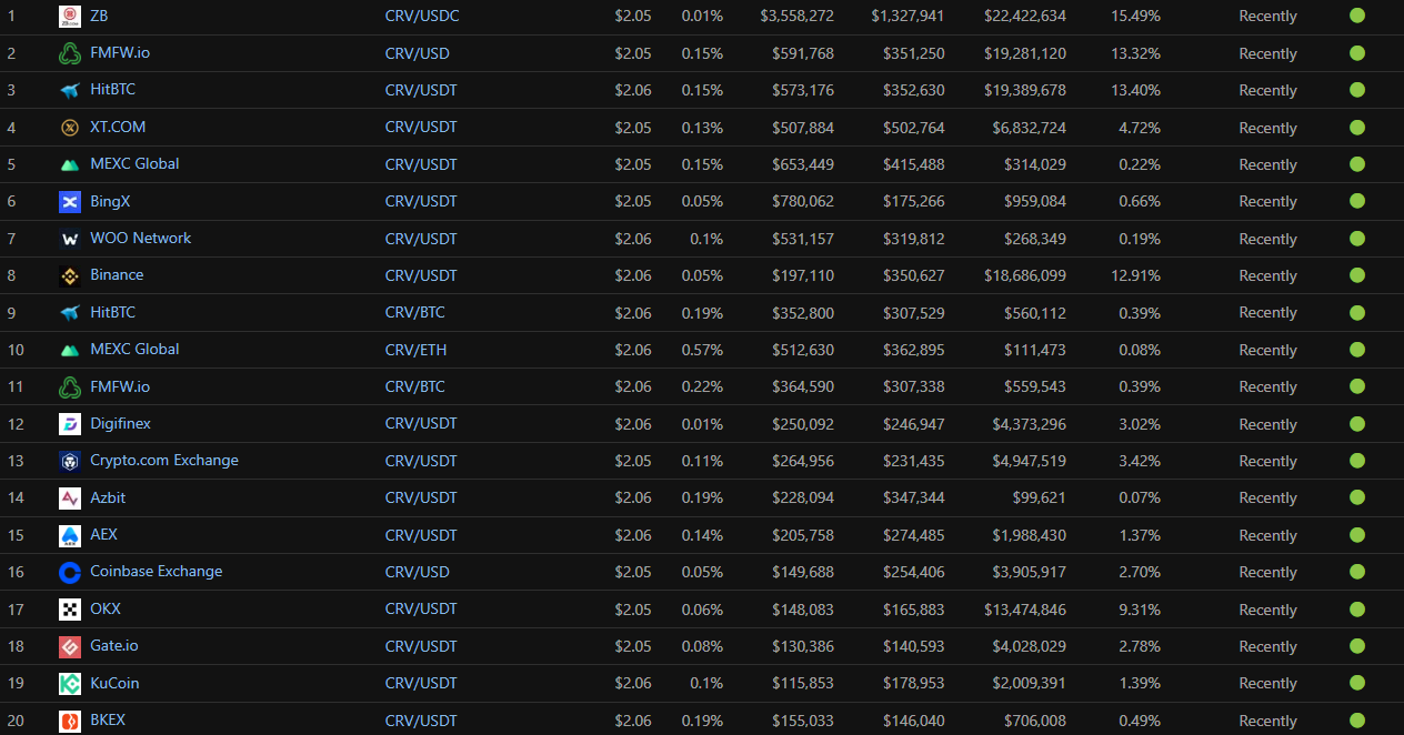 - Sàn giao dịch: Để sở hữu CRV, người dùng có thể tìm kiếm và mua nó trên các sàn CEX như MEXC Global, Binance, KuCoin… hoặc thông qua một số sàn DEX như Uniswap, SushiSwap…