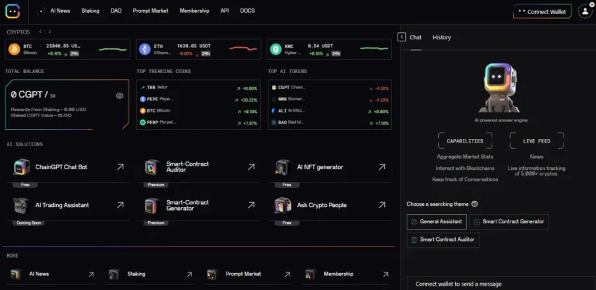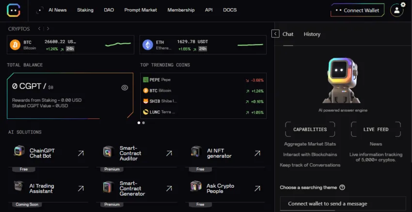 3. Sau bước này, bạn hiện có thể tự do sử dụng nền tảng ChainGPT.