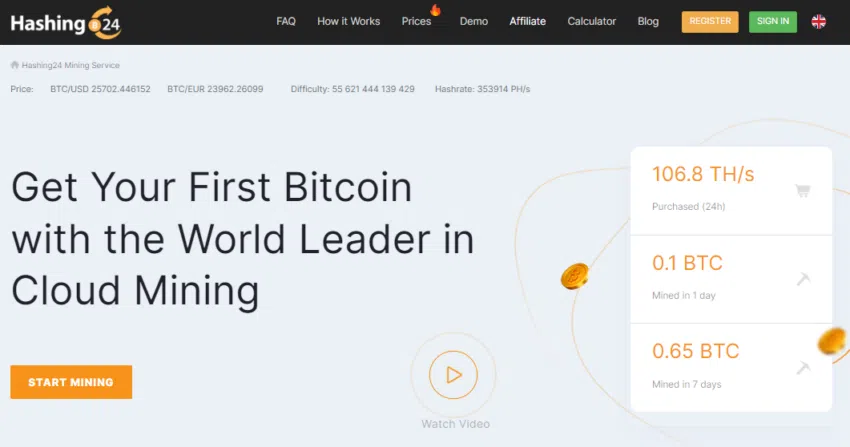 Nền tảng Hashing24 hoạt động trên mô hình đám mây. Nó có nghĩa là người dùng, dù ở bất kỳ đâu trên thế giới không cần phải mua các dàn máy hoặc hệ thống đào vật lý đầy tốn kém như trước nữa. Thay vào đó họ có thể mua một lượng sức mạnh băm nhất định và nhận lại một phần tiền điện tử được khai thác. Điều này giúp loại bỏ nhu cầu người dùng thiết lập và bảo trì phần cứng khai thác của riêng họ, vốn có thể tốn kém và đòi hỏi chuyên môn kỹ thuật. Đây là lý do khiến nhiều người thích khai thác trên nền tảng đám mây hơn là khai thác bằng CPU, ASIC hoặc GPU.