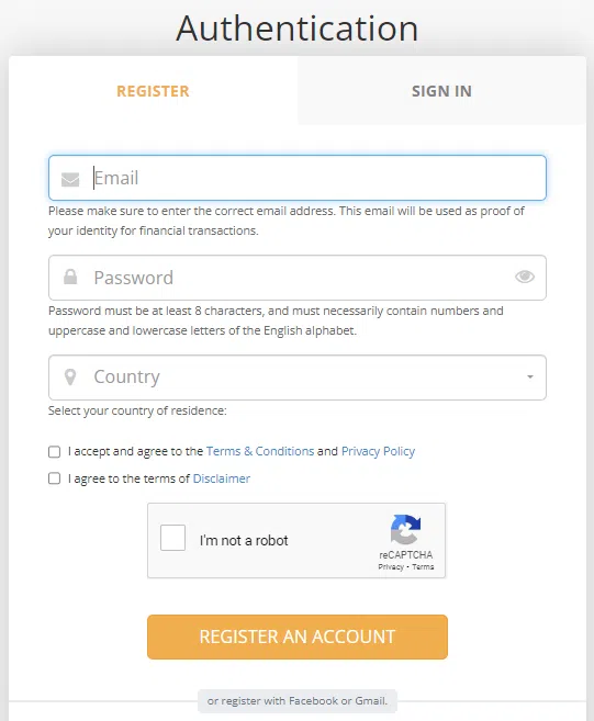 Bước 2, từ đây, bạn có thể nhập thông tin tài khoản có liên quan hoặc đăng ký bằng tài khoản của bên thứ ba (ví dụ Facebook hoặc Google).