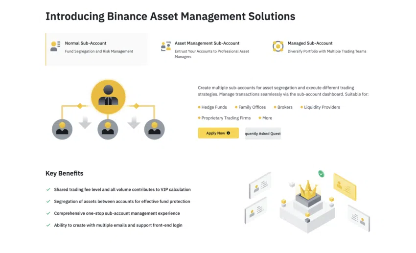 Binance cho phép các nhà quản lý tài sản phục vụ người dùng một cách hiệu quả bằng cách cung cấp các dịch vụ liên quan đến quản lý đơn hàng, báo cáo liền mạch, giám sát rủi ro… Từ các quỹ phòng hộ, nhà cung cấp thanh khoản cho đến nhà môi giới, bất kỳ ai đều có thể hưởng lợi từ tính năng này trên Binance.