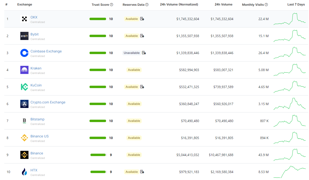 Binance được xếp hạng số 1 theo danh sách sàn giao dịch hàng đầu theo bảng xếp hạng các sàn giao dịch của BeInCrypto cùng một số nền tảng khá như CoinMarketCap hay CoinGecko. Điều đáng chú ý đầu tiên đó là điểm tin cậy (Trust score) được xếp hạng ở mức 9, mức điểm gần tối đa để đánh giá các sàn giao dịch hiện nay.