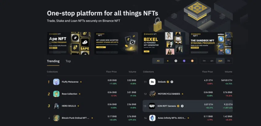 Ngoài các tính năng này, Binance còn cho phép các nhà đầu tư nhỏ lẻ vay tiền điện tử, cung cấp một NFT marketplace với đầy đủ tính năng và cung cấp khả năng khám phá dữ liệu thị trường tùy theo nhu cầu của người dùng. Đây là toàn bộ danh mục mà bạn có thể khám phá.