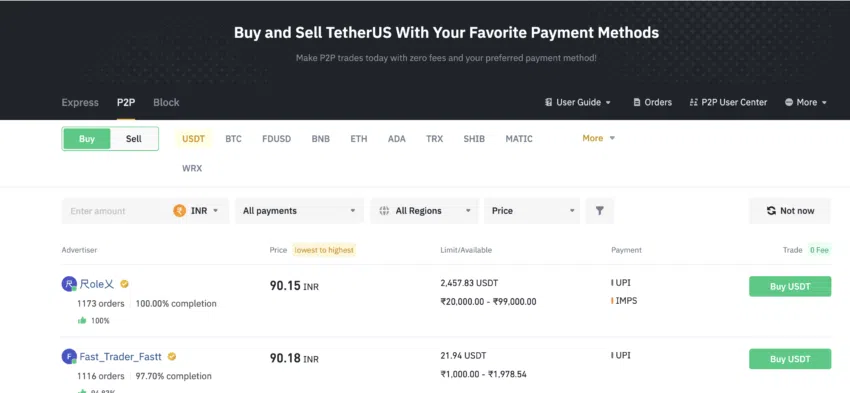 Với hơn chục loại tiền điện tử phổ biến nhất, từ USDT đến BTC, bạn có thể dễ dàng kết nối với người mua và người bán để giúp bạn thực thi giao dịch. Lựa chọn giao dịch P2P trên Binance cũng phần hỗ trợ cho các giao dịch có khối lượng lớn nếu như bạn muốn thực hiện qua hình thức này. Và nếu ngay cả P2P cũng tốn quá nhiều công sức, bạn có thể chọn tùy chọn mua và bán nhanh “Express”. Bằng cách sử dụng điều này, bạn có thể nhanh chóng mua tiền điện tử với mức giá cạnh tranh mà không cần phải kiểm tra nhiều vấn đề khác. Điều tương tự cũng đúng ngay cả đối với các lệnh bán.