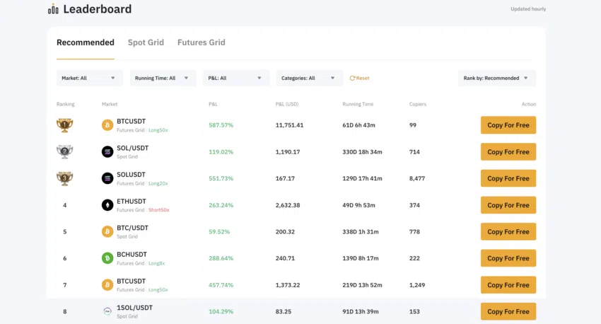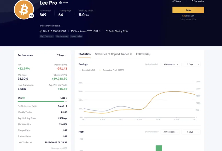 Một trong những chức năng ít được biết đến của Bybit có lẽ là tính năng sao chép giao dịch. Bằng cách này, bạn có thể sao chép chiến lược giao dịch của các nhà giao dịch thành công bằng cách theo dõi ROI 30 ngày, 90 ngày hoặc theo thời gian cụ thể khác của họ. Bạn thậm chí có thể chọn những nhà giao dịch mà bạn cho là phù hợp dựa trên bảng xếp hạng Bybit của họ. Và theo lẽ thường, các nhà giao dịch mà bạn lựa chọn copy trade sẽ nhận được một tỷ lệ phần trăm lợi nhuận nhất định nếu bạn thực hiện các giao dịch có lợi.