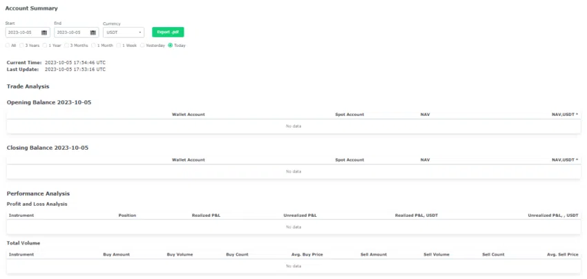 Cuối cùng, Changelly PRO có tính năng báo cáo. Nó cho phép bạn theo dõi các khung thời gian và số liệu hiệu suất nhất định, chẳng hạn như lãi và lỗ (P&L).