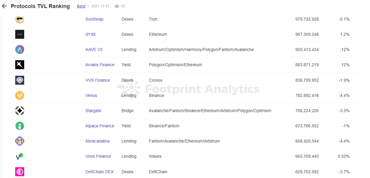 - Abracadabra và Olympus DAO cũng có mức tăng trưởng TVL nhanh chóng chỉ trong 30 ngày, TVL lần lượt đạt 668 triệu USD và 351 triệu USD.