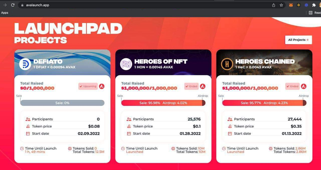 Vào tháng hai, DeFiato đã mở bán để huy động 1 triệu USD trên Avalaunch. Thời gian mở đăng ký từ 3:00 chiều (UTC) ngày 09/02/2022 đến 6:00 sáng (UTC) ngày 12/02/2022. Thời gian mở bán từ lúc 3:30 chiều (UTC) ngày 14/02/2022 và kết thúc lúc 6:00 giờ sáng (UTC) ngày 15/02/2022.