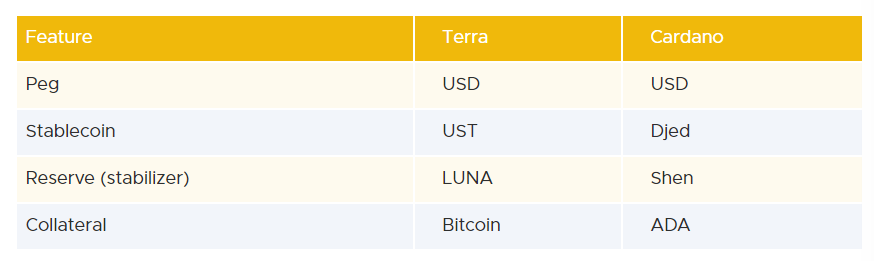 Không giống như UST, Djed được thế chấp với tỷ lệ lên đến 400% – 800%. Nghĩa là để đúc Djed, ít nhất 400% tài sản thế chấp cần phải được cung cấp.