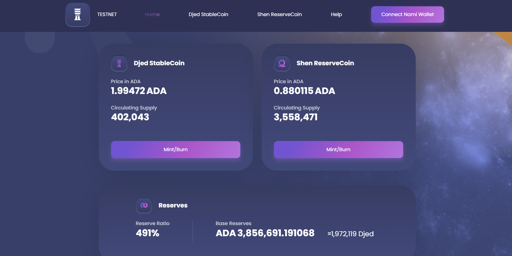 Để mint Djed hoặc Shen, người dùng sẽ cần cung cấp ADA làm tài sản thế chấp. Việc trao đổi giữa ADA, Djed & Shen sẽ được kiểm soát bởi một hợp đồng thông minh. Người dùng sẽ cung cấp ADA cho hợp đồng thông minh để mua (nhận) Djed. Tương tự, họ sẽ gửi mã thông báo Djed đến hợp đồng thông minh, hợp đồng này sẽ được đốt để đổi lại ADA. Trong trường hợp không có đủ ADA trong hợp đồng thông minh để thanh toán cho tất cả người bán Djed, đồng Shen sẽ được đúc và bán cho ADA để cung cấp sự ổn định. Miễn là tỷ lệ dự trữ ADA dưới mức yêu cầu, người sở hữu Shen sẽ không thể đổi tiền Shen của họ để lấy ADA. Những người nắm giữ Djed sẽ được ưu tiên trong tình huống này.