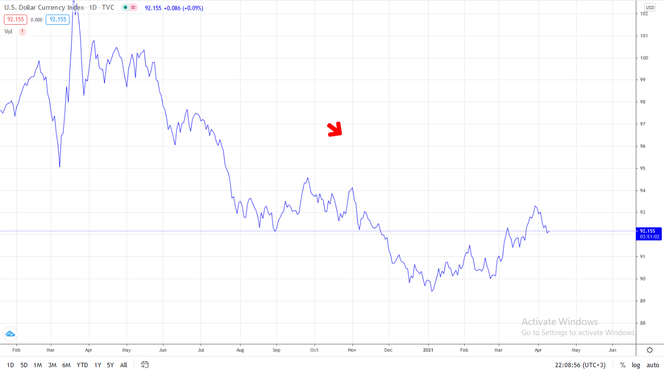 - Nếu chỉ số này đang tăng, điều đó có nghĩa là đồng đô la đang mạnh lên so với rổ.