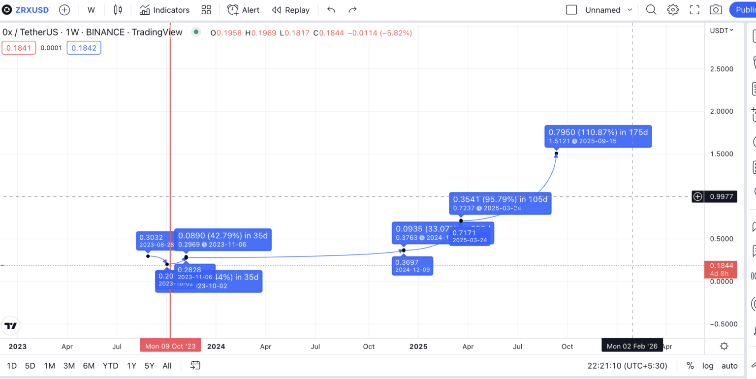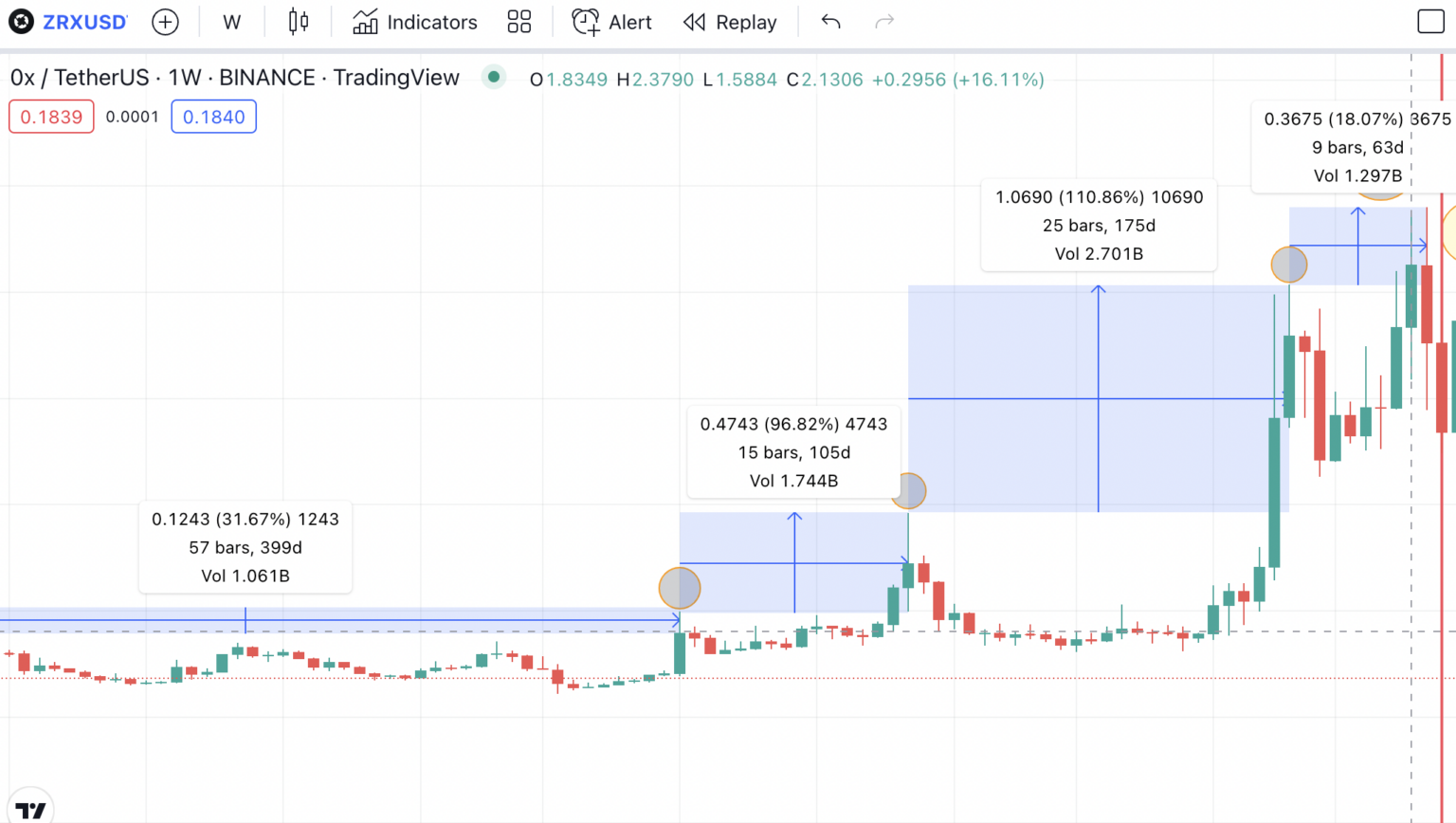 Khoảng cách giữa các mức cao của ZRX theo TradingView