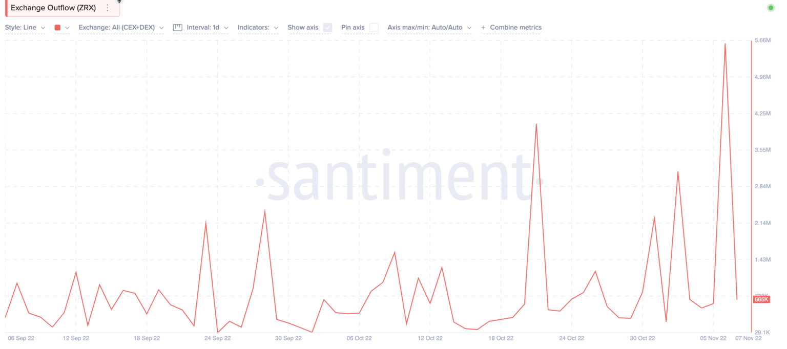Thêm vào đó, tháng 11 đã chứng kiến sự gia tăng đột biến về dòng tiền ZRX chảy ra khỏi các sàn giao dịch. Điều này có nghĩa là mọi người đang lấy token khỏi các sàn giao dịch, có thể là để nắm giữ hoặc sử dụng cho các hoạt động của nhà phát triển.
