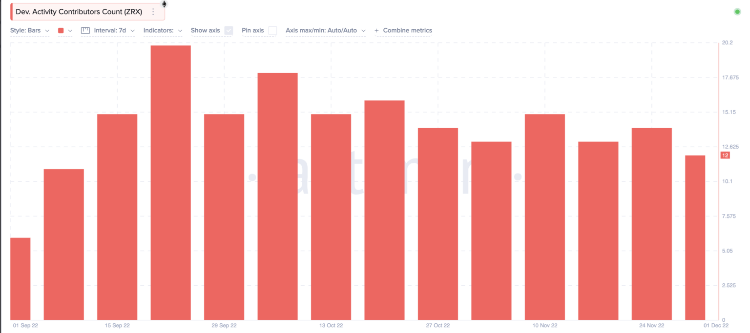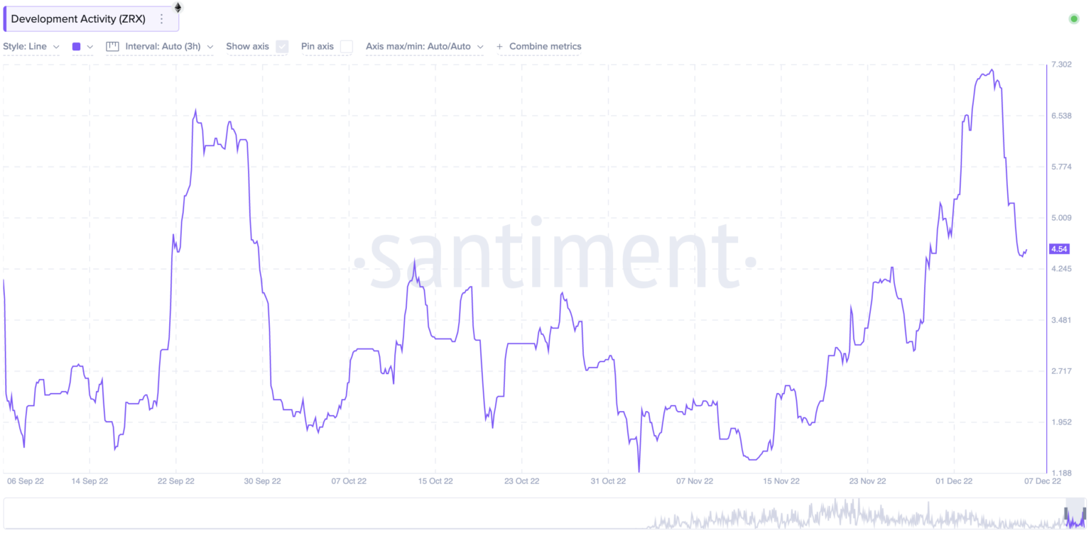 Đến tháng 12/2022, hoạt động phát triển mạng 0x đạt mức cao kỷ lục. Nó cho thấy mối quan tâm cao của nhà đầu tư đối với các DEX sau sự sụp đổ kinh hoàng của FTX.
