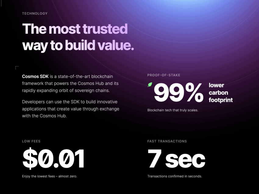 SponsoredCosmos tự hào có giao thức IBC (Inter-Blockchain Communication) mới. Điều này cho phép các thiết lập và hệ sinh thái chuỗi khối khác nhau, truyền dữ liệu và tài sản kỹ thuật số theo hai chiều. Trung tâm của hệ sinh thái Cosmos là Cosmos Hub đóng vai trò là lớp quản trị. Đồng coin ATOM là một phần không thể thiếu của Cosmos Hub và tạo điều kiện quản trị liền mạch, hỗ trợ đặt cọc (staking) và được dùng để thanh toán phí giao dịch.