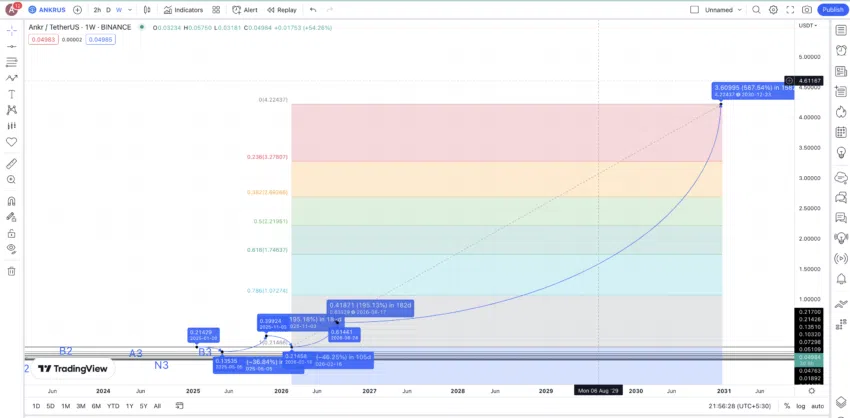 Sử dụng mức thấp nhất vào năm 2026 và với mức đỉnh cao nhất trong năm, chúng ta có thể ngoại suy các mức dự báo giá ANKR cho đến năm 2030 thông qua các mức Fib. Nếu giá tối đa của ANKR đi theo cùng một lộ trình tăng trưởng, thì chúng tôi hy vọng mức đỉnh dự đoán về giá ANKR cho năm 2030 sẽ đạt 4.224 USD.
