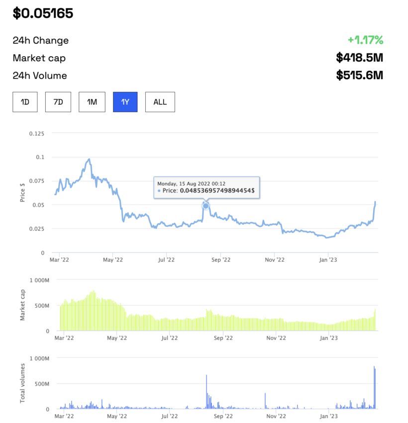 Mọi thứ trở nên thú vị nếu chúng ta nhìn vào biểu đồ giá ANKR hàng năm. Mặc dù giá vẫn đang cố gắng vượt qua mức cao nhất vào tháng 8/2022, nhưng cần ghi nhận là khối lượng giao dịch hiện tại là cao nhất từ trước đến nay so với cùng kỳ năm ngoái. Và mặc dù điều này nghe có vẻ lạc quan nếu xét về tính thanh khoản ngày càng tăng và sự chú ý mà ANKR đang nhận được, nhưng việc giảm hoạt động giao dịch được cho là tín hiệu cho xu hướng giá giảm.