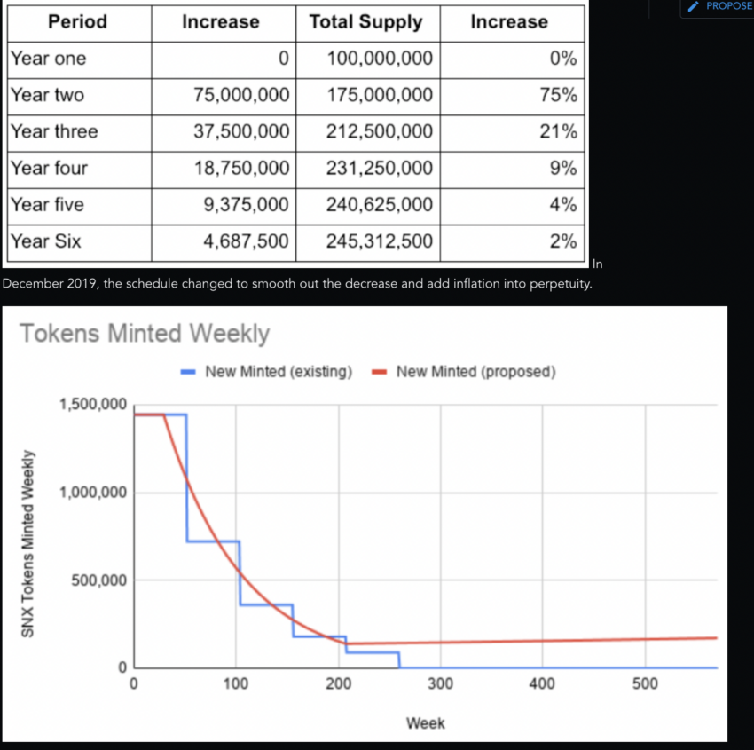 Dưới đây là cách nguồn cung phần thưởng SNX cho những người staking SNX hiện tại.
