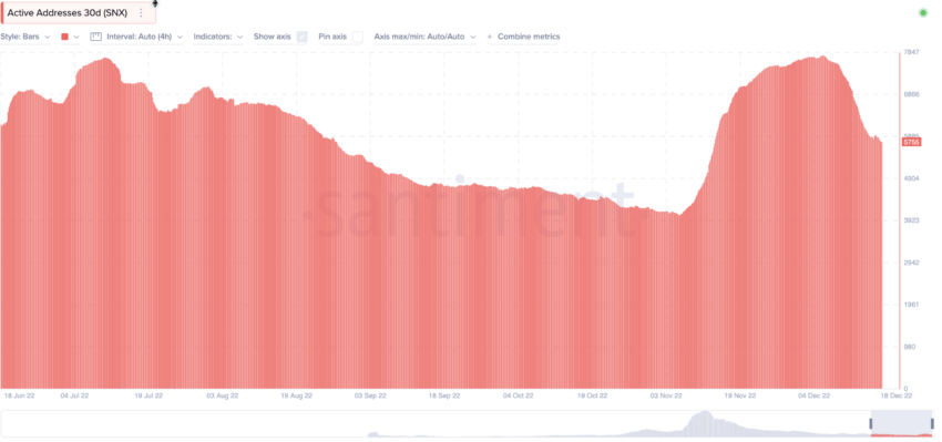 Cuối cùng, số lượng các địa chỉ đang hoạt động nắm giữ token SNX hiện cao hơn mức của tháng 7. Điều này có thể khiến giá SNX tăng lên trong thời gian tới, nếu thị trường ở trong điều kiện thuận lợi.