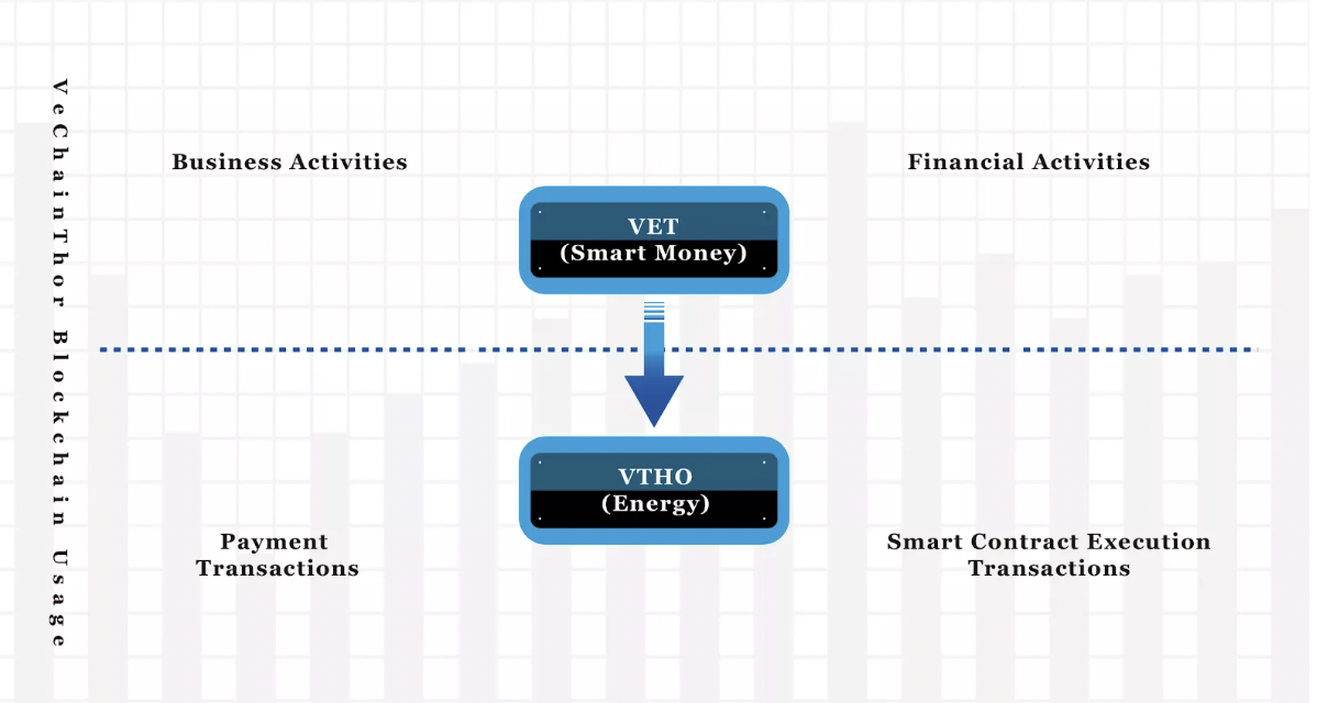Theo đó, token VET đóng vai trò như “smart money” của hệ sinh thái VeChain. VTHO — token thứ hai của cơ sở hạ tầng kinh tế kép — dùng để trả phí cho năng lượng hoạt động của chuỗi.