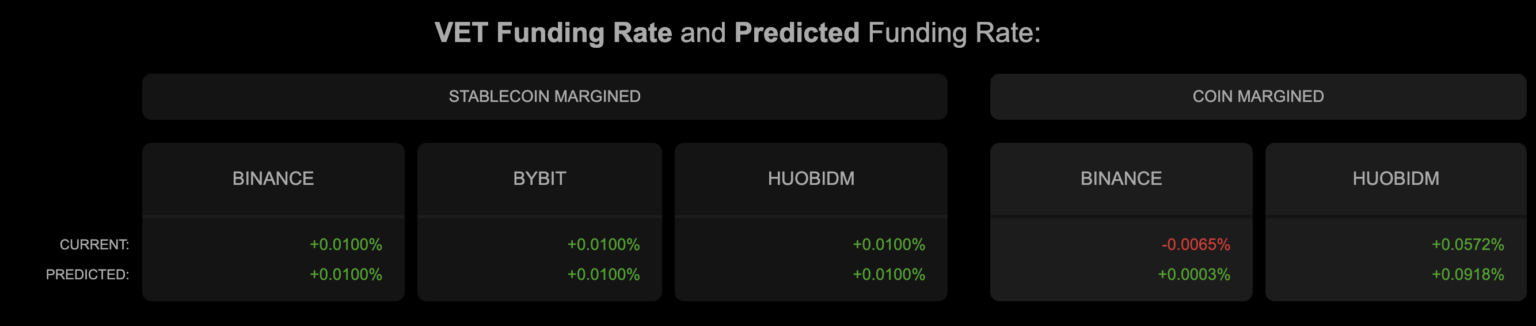 Tính đến thời điểm viết bài, hầu hết các sàn giao dịch đều có lãi suất ký quỹ ở mức dương. Tuy nhiên, nó đang ở mức cận biên. Do đó, VET có thể tiếp tục giao dịch trong một phạm vi trong một khoảng thời gian nữa.