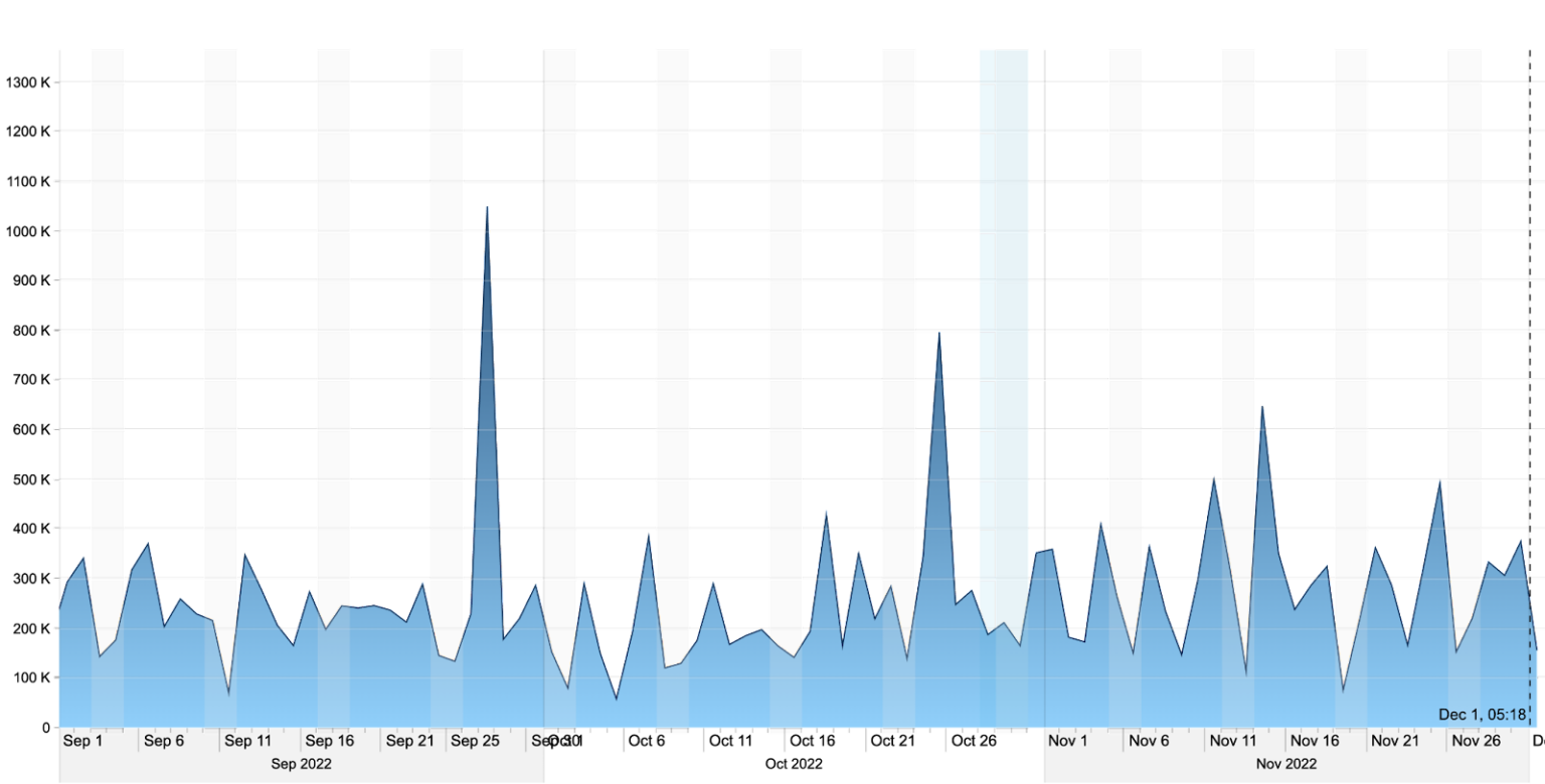 Trong biểu đồ dưới đây, giá VET đều biến động mỗi khi lượng đề cập trên mạng xã hội tăng lên. Sau ngày 28/10/2022, giá nhanh chóng đạt mức cao mới. Theo đó, các đề cập trên mạng xã hội đã tăng lên trong thời gian này khi cộng đồng VeChain mong chờ thông báo về PoA 2.0.