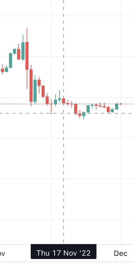 - Sau đó, một đỉnh thấp hơn được hình thành tại 0.18722 USD vào tháng 11/2021.