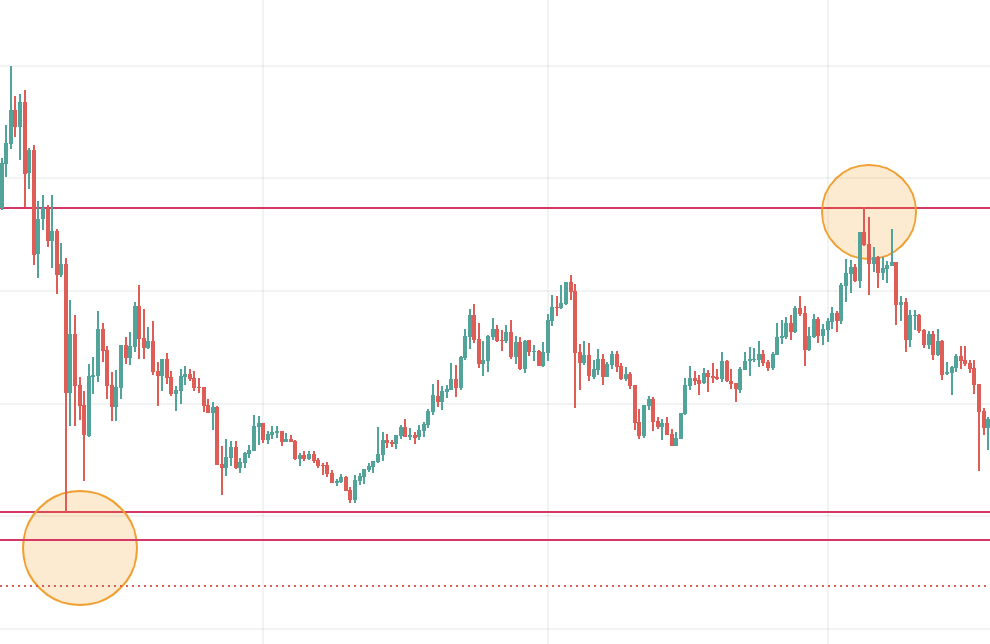 Trên biểu đồ ngày, thời gian để đi từ điểm A đến điểm B là 400 ngày. Bây giờ chúng ta hãy xem các mức thấp nhất và cao nhất mà VET từng lập được.