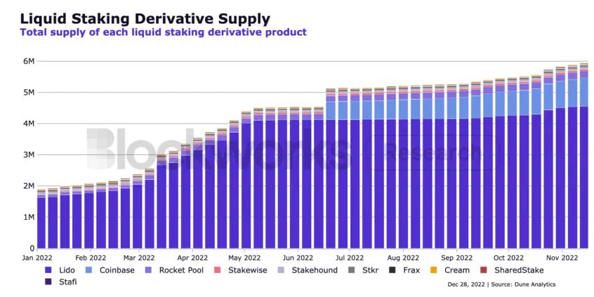 Dựa theo phương thực hoạt động này, một số vấn đề nổi cộm được đưa ra. Theo đó, có một số giải pháp nổi bật chiếm phần lớn lượng ETH staking hiện nay. Theo tìm hiểu của BeInCrypto, có đến 95% lượng ETH staking chỉ đến từ 3 giao thức. Hệ quả là nó gây ra vấn đề về tập trung hóa, thậm chí trong một số trường hợp còn khiến liquid staking token bị depeg. Trường hợp LDO token của Lido Finance là một ví dụ điển hình.