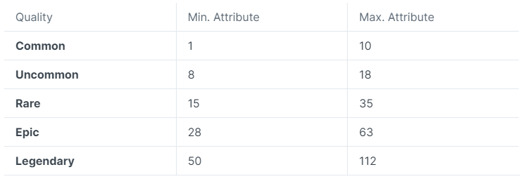 - (1) Quality: Quality càng cao thì tỷ lệ phân bổ thuộc tính càng cao và ngược lại.